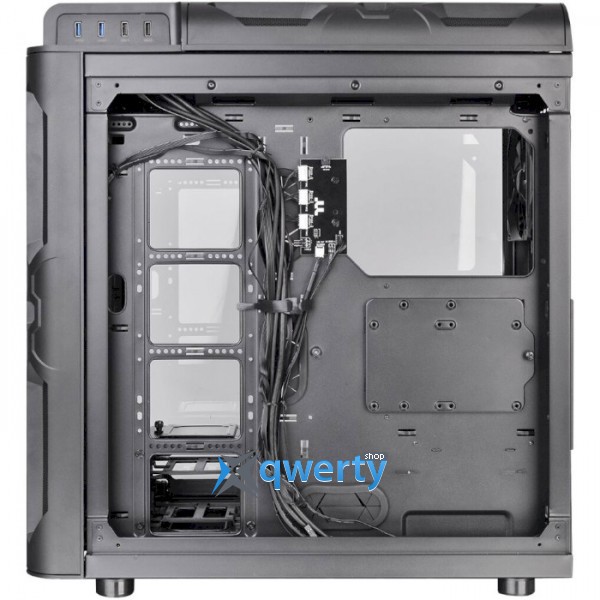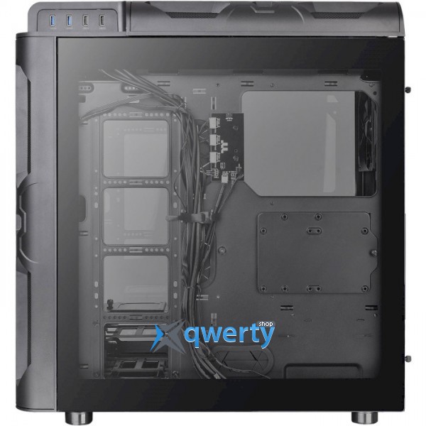 По бокам корпуса установлены панели из закаленного стекла толщиной 4мм. Они крепятся на петлях и легко снимаются, что позволяет иметь легкий доступ к начинке ПК. Использование закаленного стекла вместо традиционного пластика, гарантирует более высокую прочность и устойчивость к появлению царапин.