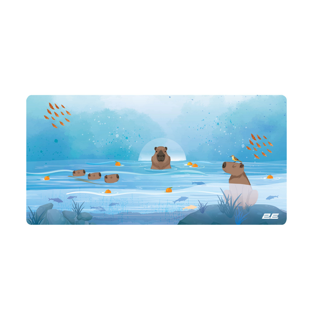 Тип Килимок для миші / Робоча поверхня Одностороння / Додатково Покриття – лискучий поліестер / Оригинальний принт із зображенням капібари / Матеріал Гума /не ковзка / Колір синій/ Габарити 800 х 400 x 2 мм / Товщина 2 мм