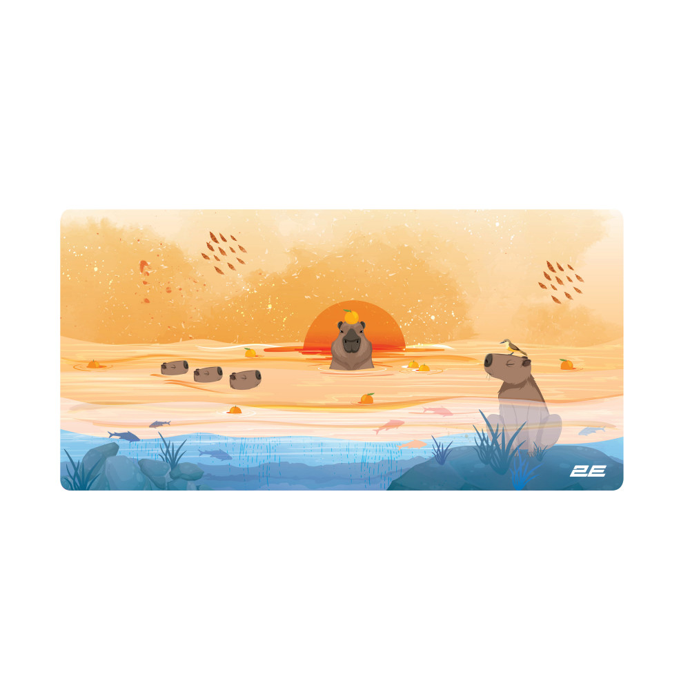 Тип Килимок для миші / Робоча поверхня Одностороння / Додатково Покриття – лискучий поліестер / Оригинальний принт із зображенням капібари / Матеріал Гума /не ковзка / Колір Жовтий / Габарити 800 х 400 x 2 мм / Товщина 2 мм