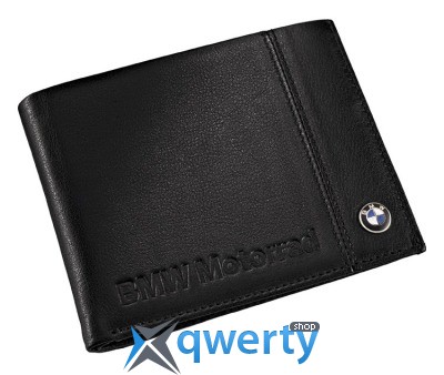 Кожаный кошелек BMW Motorrad Logo Wallet, Black Материал: 100% кожа Высококачественный классический кожаный бумажник с высокой функциональностью внутренних отделений, 2 кармана для банкнот, а также карман с кнопкой для монет, 10 слотов для кредитных карт и 1 скрытый отсек