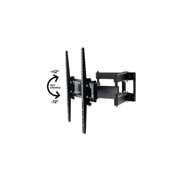 Цей кронштейн особливий своєю здатністю до регулювання кута нахилу від 12 до -12 градусів, що дає змогу налаштувати телевізор під найоптимальніший кут огляду для глядачів у будь-якому місці кімнати. Завдяки чотирьом ступеням свободи, ви можете вільно обертати телевізор в різних напрямах, забезпечуючи максимальний комфорт.