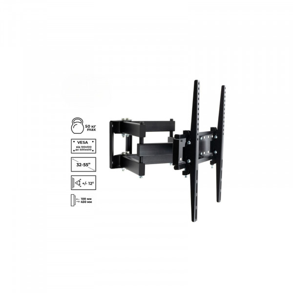 Дизайн цього кронштейну не менш важливий: стильний та компактний, він вдало поєднується з будь-яким інтер'єром, додаючи йому елегантності. Мінімальна глибина від стіни складає 100 мм, а максимальна — 450 мм, що дозволяє як компактне розміщення, так і регулювання відстані для оптимального перегляду.