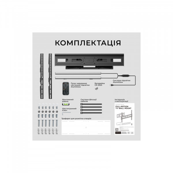 Особлива увага приділяється інноваційній LED-підсвітці, яка вбудована у цей кронштейн. М'яке та розсіяне світло не лише покращить дизайнерські акценти кімнати, але й суттєво знижує зорове навантаження під час перегляду у темний час доби, зменшуючи контраст між яскравим екраном і навколишнім освітленням. Це робить KIVI ALUMIGLOW ідеальним вибором для тривалих сеансів перегляду.