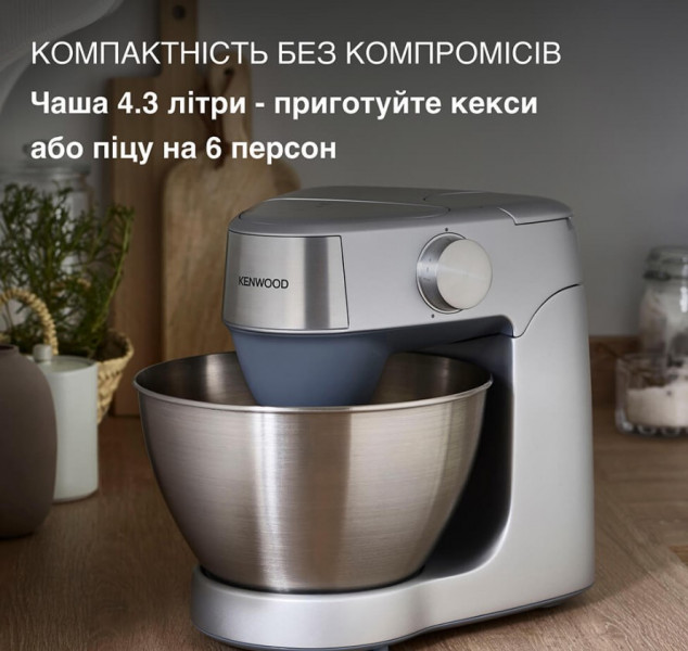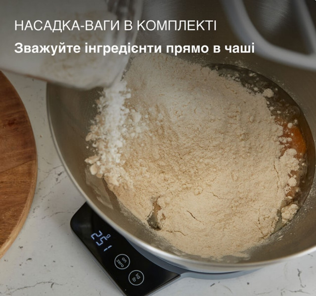 Аксесуари для основної чаші: К-образна насадка; крюк для тіста; вінчик.