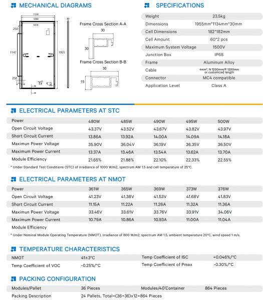 Має товщину рами 30 мм, легко переноситься та монтується. Ефективність освоєння сонячної енергії - 22.1 %, максимальний вольтаж системи - 1500 В....