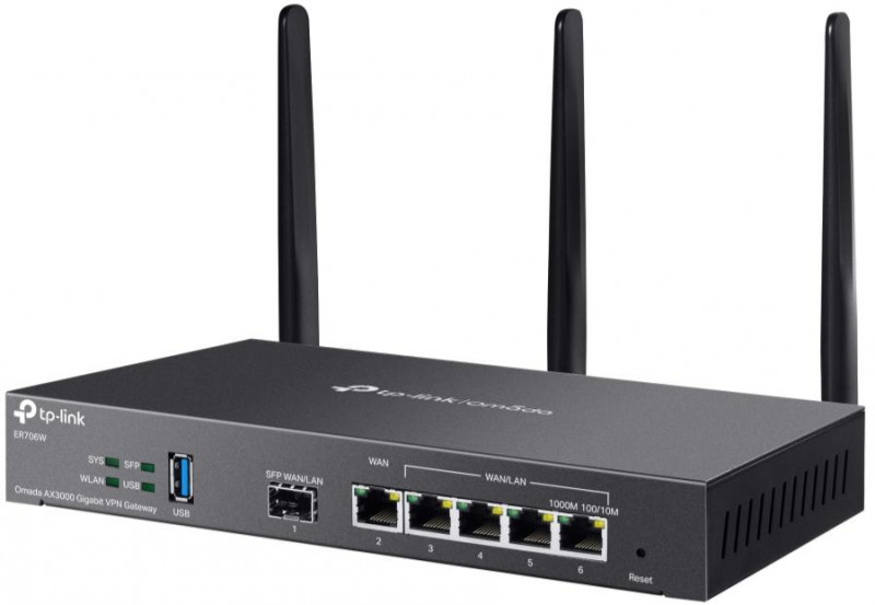 TP-Link ER706W — Wi-Fi роутер і шлюз в одному пристрої, ідеально підходить для невеликих магазинів. Має швидкість AX3000 Wi-Fi 6 з частотою 2402 Мбіт/с на 5 ГГц і 574 Мбіт/с на 2,4 ГГц.
