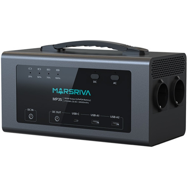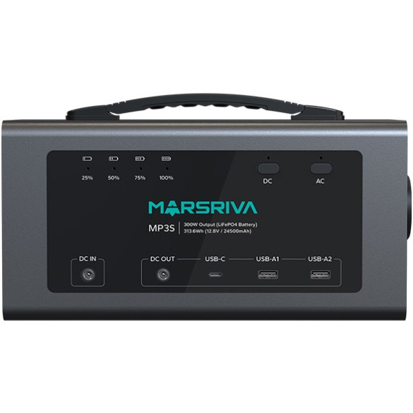 Номінальна ємність Marsriva MP3S становить 313,6 Вт-год. Користуйтесь станцію вдома – вона є надійним резервним джерелом енергії. Беріть її з собою у кемпінг та насолоджуйтесь приємним відпочинком з друзями – організовуйте вуличне освітлення, влаштовуйте кінотеатри під відкритим небом, заряджайте мобільні пристрої.
