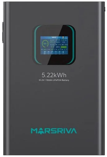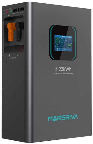 Marsriva MR-LFP48-100-WMD — батарея типу LiFePO4 та місткістю 102 Аг. Підходить для джерел безперебійного живлення, аварійного електропостачання, аварійного резервного джерела живлення, систем автоматичного керування, сигналізації та систем безпеки.