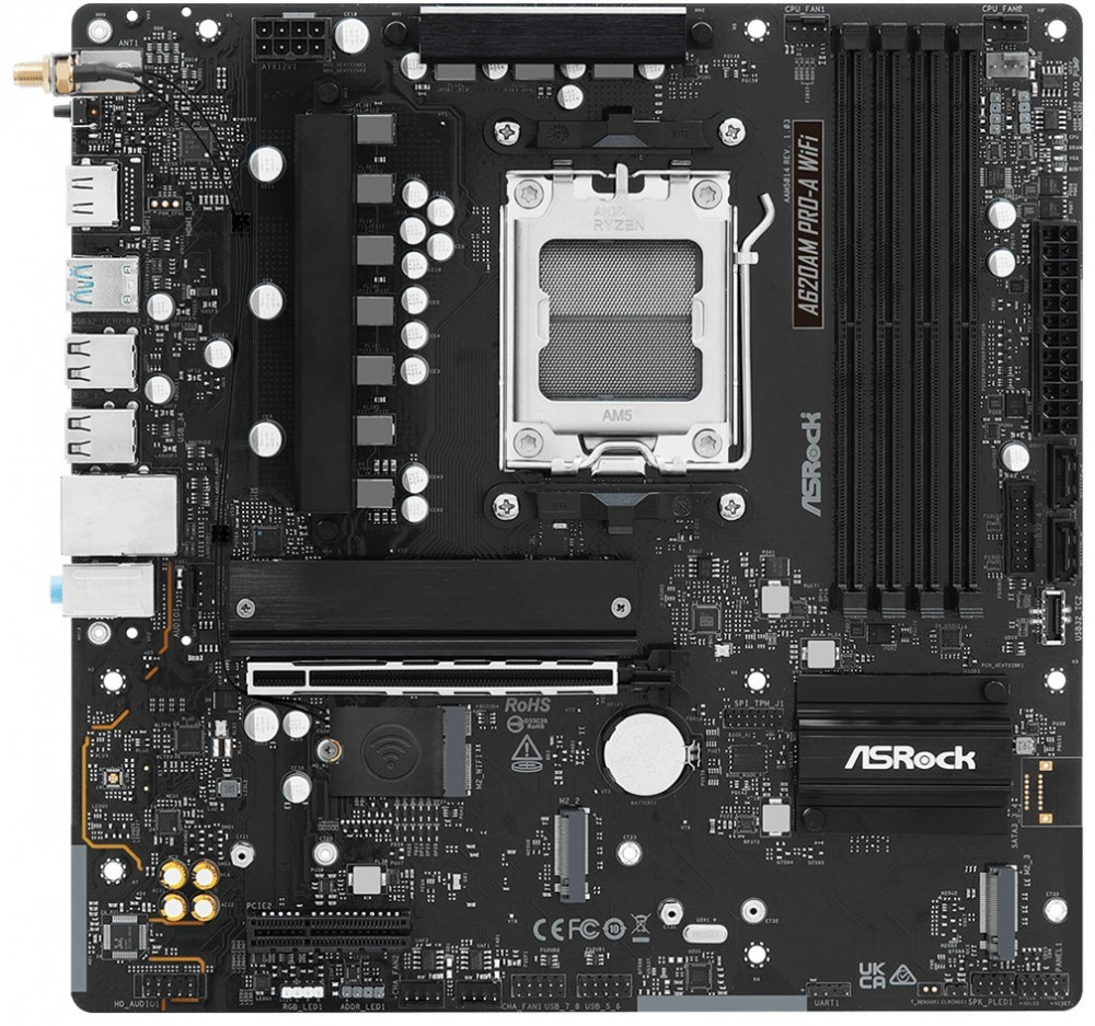 Материнська плата ASRock A620AM Pro-A WIFI — це надійне рішення для сучасних систем на базі процесорів AMD Ryzen 9000, 8000 та 7000 серій. Вона розроблена з акцентом на стабільність і продуктивність, пропонуючи підтримку найновіших технологій.