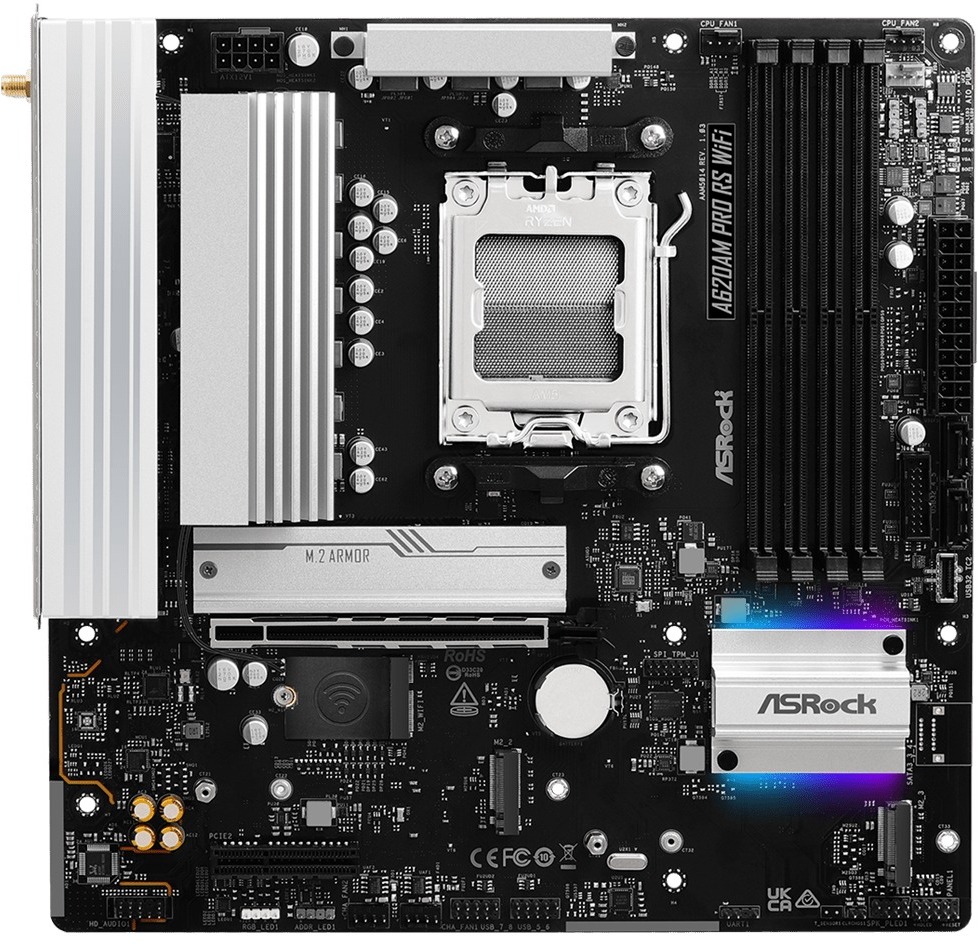 Материнська плата AsRock A620AM PRO RS WIFI — це компактне рішення для сучасних систем на базі процесорів AMD Ryzen 9000, 8000 і 7000 серій. Вона поєднує високу продуктивність та підтримку новітніх технологій, що робить її ідеальною для повсякденних і професійних завдань.