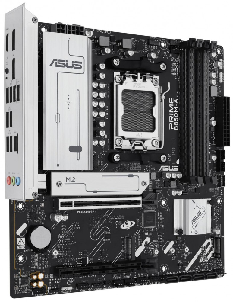ASUS PRIME B850M-A-CSM — материнська плата формату micro-ATX, розроблена для процесорів AMD Ryzen 9000 серії, яка забезпечує високу продуктивність і надійність для ПК різного призначення. Вона підтримує сучасні технології, такі як DDR5 і PCIe 5.0, та оптимізована для роботи з вимогливими програмами, включно з AI-застосунками.