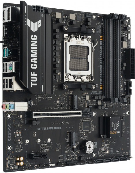 ASUS TUF GAMING A620AM-PLUS — це міцна материнська плата формату micro-ATX на чіпсеті AMD A620 для сокета AM5, сумісна з процесорами AMD Ryzen, включаючи серію 9000. Вона поєднує надійність військового класу з геймерськими можливостями, забезпечуючи стабільну роботу для ігор, AI-застосунків та творчих завдань. Завдяки посиленій системі живлення та всебічного охолодження ця плата витримує інтенсивні навантаження без компромісів.