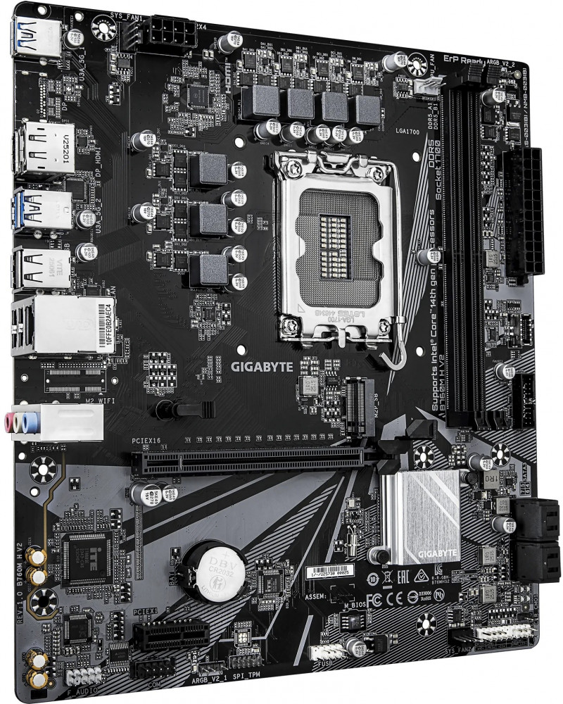 Gigabyte B760M H V2 — це надійна материнська плата формату Micro ATX на чипсеті Intel B760, розроблена для процесорів Intel Core 14-го, 13-го та 12-го поколінь. Вона пропонує баланс між продуктивністю та доступністю, з акцентом на підтримку сучасної пам'яті DDR5, швидке сховище та зручні інструменти для налаштування.