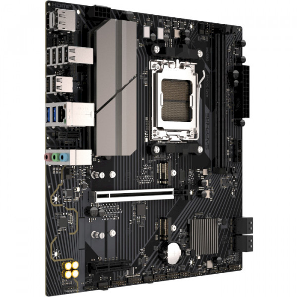 Материнська плата SAPPHIRE B650M-E — це компактне та надійне рішення форм-фактора Micro-ATX на чипсеті AMD B650 з сокетом AM5, створене для сучасних процесорів AMD Ryzen 9000, 8000 та 7000 серій. Вона поєднує підтримку передових технологій, таких як PCIe 5.0 для швидкісного зберігання та DDR5-пам’ять, з ефективним живленням і охолодженням, що робить її привабливим вибором для складання продуктивних систем.