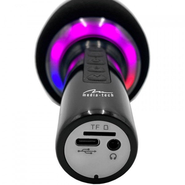 Media-Tech Karaoke IDOL - компактний бездротовий мікрофон із Bluetooth-динаміком, 5-рівневим модулятором голосу та вбудованою диско-ілюмінацією, який перетворить кожне свято на яскраву та незабутню музичну подію.