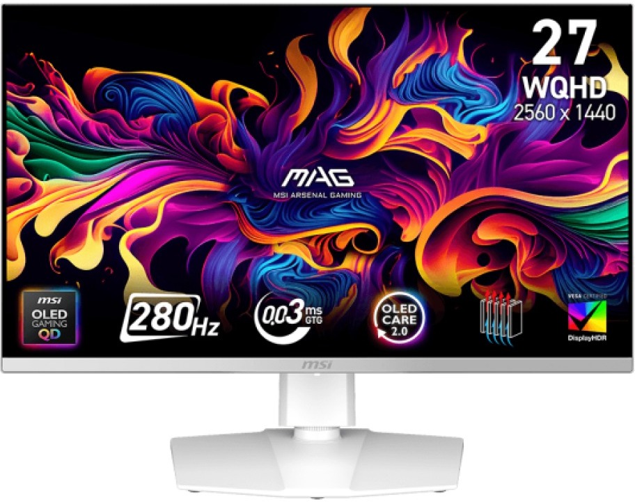 MSI MAG 272QPW QD-OLED X28 — це 27-дюймовий ігровий монітор з панеллю QD-OLED третього покоління. Він забезпечує роздільну здатність 2560x1440, частоту оновлення 280 Гц та час відгуку 0.03 мс (GtG). Модель сертифікована VESA ClearMR 15000 та DisplayHDR True Black 400, що гарантує чітке зображення без розмиття в русі та глибокі чорні кольори.