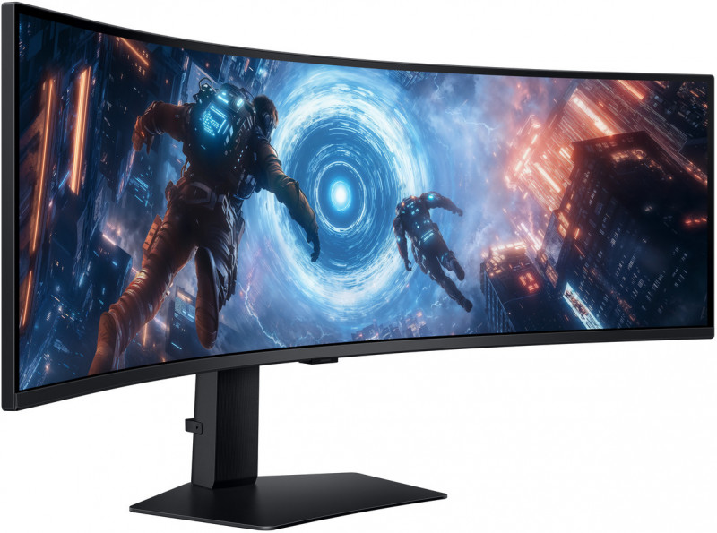 Ультраширокий ігровий монітор Samsung Odyssey G9 LS49FG916EIXUA — це справжній гігантський портал у гру, який перетворює звичайний стіл на панорамну кіберспортивну арену з безмежним полем зору та блискавичною швидкістю, ніби ти вже не граєш, а живеш всередині світу.