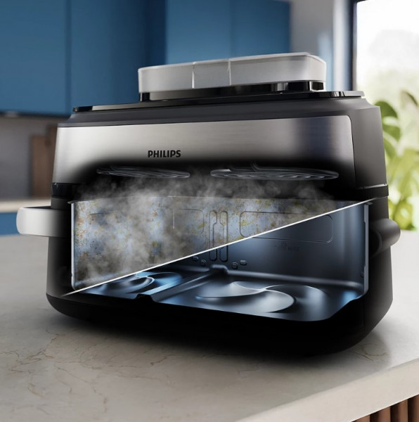 Проводьте більше часу, насолоджуючись їжею, і менше – відтираючи забруднення завдяки автоматичній функції SteamClean, якої немає в жодному іншому аерогрилі з висувною скринькою. Пара допомагає без зусиль видалити жирові відкладення у великому кошику та навколо нагрівального елемента одним натисканням кнопки. Всі знімні деталі також можна мити в посудомийній машині, вони мають антипригарне покриття. Виняткові результати приготування без виняткових зусиль для очищення