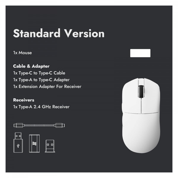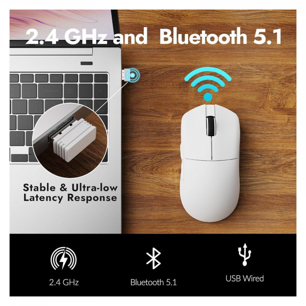 Тип мыши - обычная / Разрешение сенсора - 125/500/1000/2000/4000/8000 dpi / Тип сенсора - оптический / Тип подключения - проводное + беспроводное / Количество кнопок - 5 / Наличие подсветки - без подсветки / Эргономичная - да /
