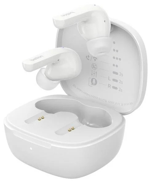 Belkin Soundform Motion — ідеальні бездротові навушники для поїздок на роботу, тренувань чи відпочинку. 12-міліметрові динаміки та 3 попередні налаштування еквалайзера забезпечують фірмовий звук Belkin для високоякісного персонального звучання. Чохол забезпечує бездротову зарядку на будь-якій зарядній панелі з підтримкою Qi. Підказки для сенсорного керування зручно розташовані всередині кришки.