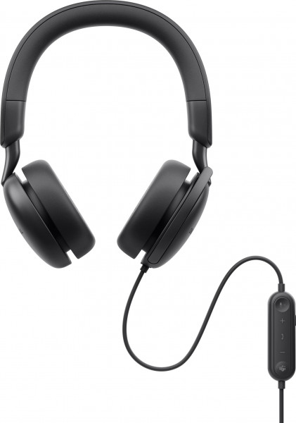 Провідне підключення через USB-C забезпечує стабільну передачу аудіо й керування без затримок. На кабелі розміщено елементи керування гучністю, викликами, режимами ANC і кнопкою Microsoft Teams. Для налаштування звуку та параметрів доступна програма Dell.