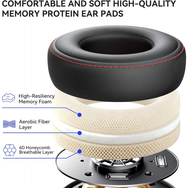 Ергономічна конструкція навушників завершується м'якими, потовщеними амбушурами з ефектом пам’яті, що не лише забезпечують максимальний комфорт під час тривалого користування, але й чудову звукоізоляцію. Легкі та гнучкі екож-кіарні амбушури адаптуються до унікальної форми вашого обличчя, мінімізуючи витік звуку та забезпечуючи ідеальний захист від шуму зовні.