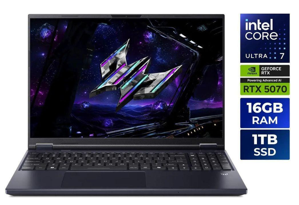 Дисплей: 16";IPS;2560x1600;240 Гц / Процесор: Intel Core Ultra 7 255HX;2.4 ГГц / Відеокарта: NVIDIA GeForce RTX 5070 / ОЗП: 16 ГБ;DDR5 / SSD: 1000 ГБ / ОС: Windows 11 Home / Маса: 2.7 кг