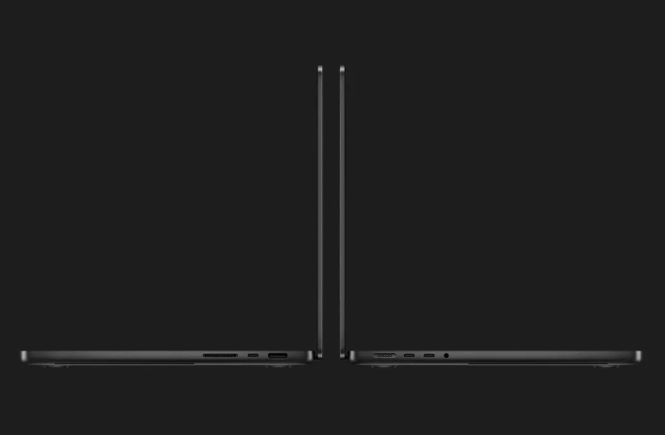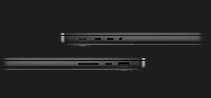 MacBook Pro оснащений усім необхідним для професійного підключення. У розпорядженні користувача — три порти Thunderbolt 4 або 5, порт HDMI, роз’єм MagSafe 3 для заряджання, слот для карт пам’яті SDXC та стандартний аудіороз’єм для навушників. Ви можете підключати високошвидкісні периферійні пристрої, зовнішні монітори та працювати без обмежень.