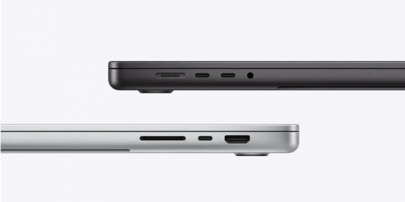 MacBook Pro оснащено набором портів для підключення високошвидкісної периферії, моніторів із високою роздільною здатністю або прямого зчитування карток SDXC. Моделі з чипом M5 оснащені портами Thunderbolt 4 і підтримують Wi-Fi 6E та Bluetooth 5.3. Моделі з чипами M5 Pro або M5 Max отримали Thunderbolt 5, що забезпечує швидкість передачі даних до 120 Гбіт/с.