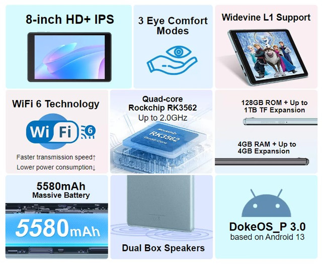Мощность для лучшей эффективности и плавности Rockchip RK3562 справляется со всеми задачами начиная от быстрого запуска приложений и плавной потоковой передачи видео до легкой многозадачности. Полностью удовлетворяйте свои основные ежедневные потребности в развлечениях.