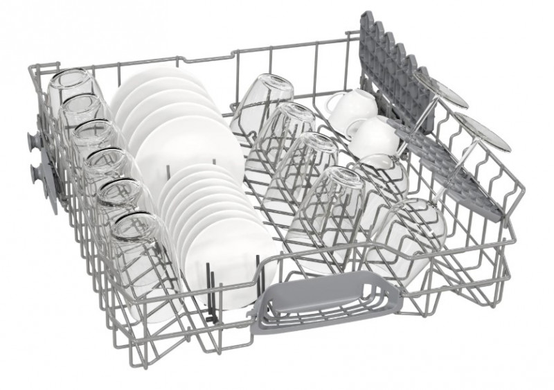 Система регулювання верхнього кошика Rackmatic дозволяє налаштувати внутрішню частину відповідно до ваших поточних потреб. Система дозволяє регулювати висоту кошика, а вибране положення можна легко змінити, навіть коли кошик повний. Це дозволяє налаштувати внутрішню частину відповідно до ваших потреб, навіть для дуже високих тарілок у нижньому кошику або високих склянок чи кухлів у верхньому кошику.