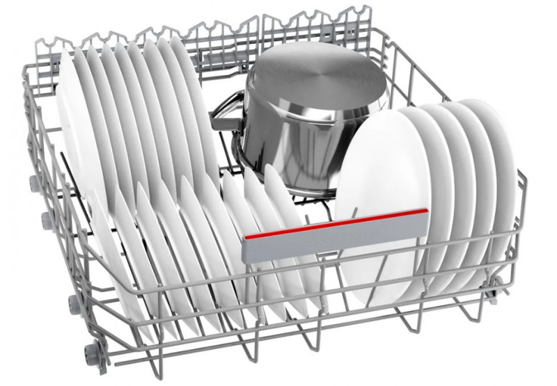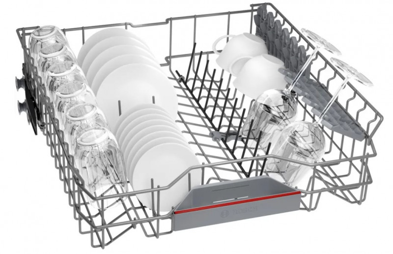 Система регулювання верхнього кошика Rackmatic дозволяє налаштувати внутрішню частину відповідно до ваших поточних потреб. Система дозволяє регулювати висоту кошика, а вибране положення можна легко змінити, навіть коли кошик повний. Це дозволяє налаштувати внутрішню частину відповідно до ваших потреб, навіть для дуже високих тарілок у нижньому кошику або високих склянок чи кухлів у верхньому кошику.