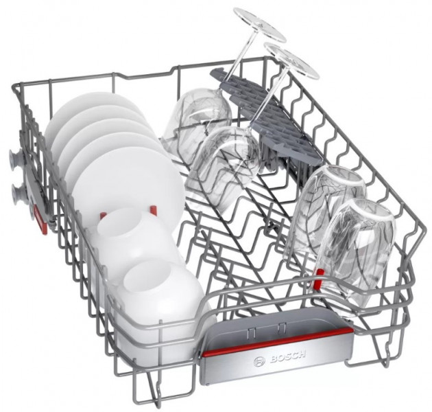 Система регулировки верхней корзины Rackmatic позволяет настроить внутреннее пространство в соответствии с вашими текущими потребностями. Система позволяет менять настройку корзины на разной высоте, а выбранное положение можно легко изменить, даже когда корзина заполнена. Благодаря этому вы можете адаптировать интерьер к своим потребностям, в том числе для очень высоких тарелок в нижней корзине или высоких стаканов или кружек в верхней корзине.