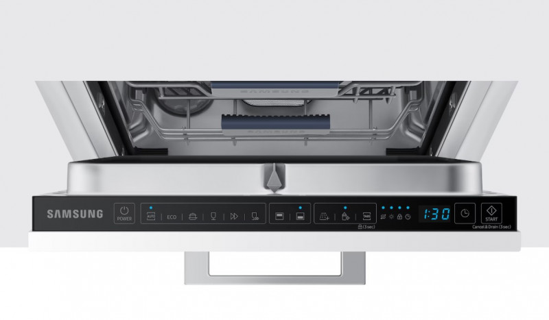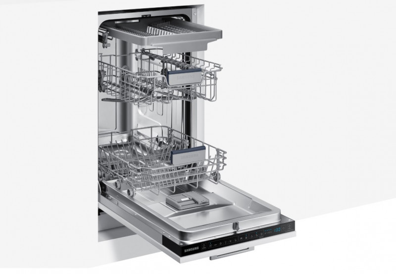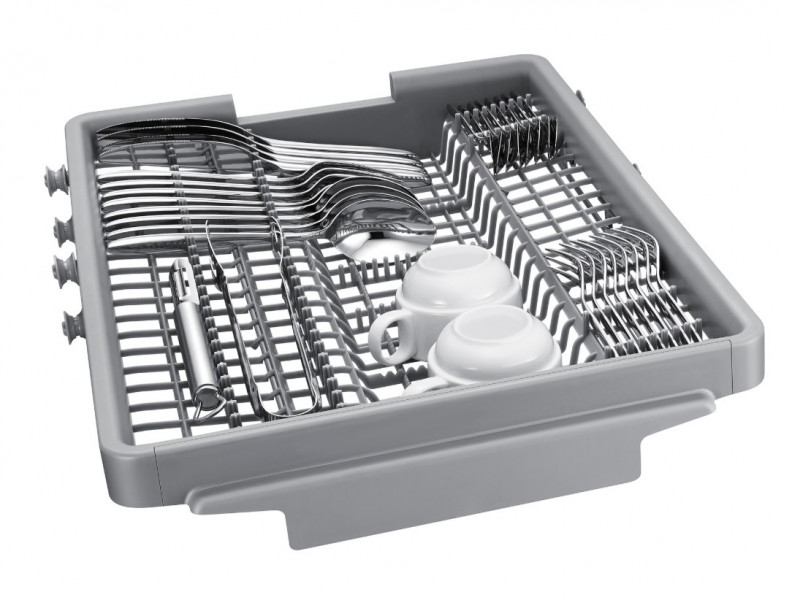 3-й кошик робить миття столового приладдя й великого посуду значно зручнішим. Він утворює окрему зону для розміщення приладдя й кухонного посуду. Завантаження й вивантаження предметів відбувається легко та швидко. Якщо порівняти з моделями Samsung з двома кошиками, додатковий кошик дає змогу вивільнити в посудомийній машині додаткове місце для інших предметів.