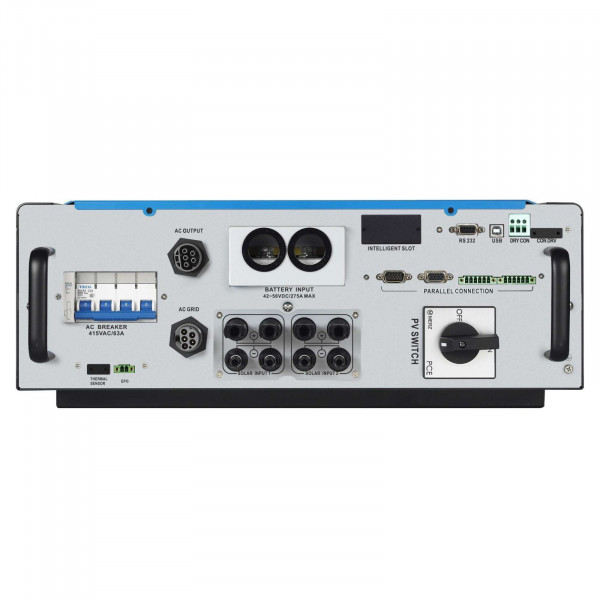 гібридний, 3 фази, Потужність інвертора (активна) - 10 кВт, 400 - 800 В, 10 кВ·А, 200 А, 0 - 90%, вентилятор, 622 х 167 х 500 мм