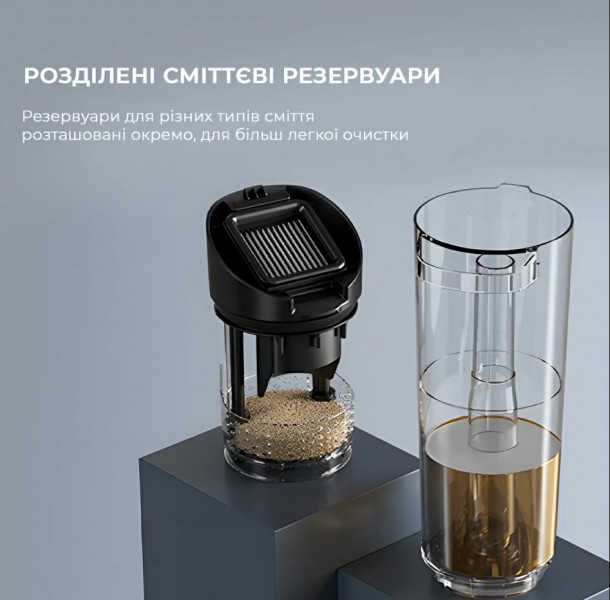 Конструкція миючого пилососа передбачає два окремі баки для чистої та відпрацьованої води. Таке рішення дозволяє прибирати за один підхід велику площу будинку чи квартири. Також у баку для брудної відпрацьованої води передбачена система відокремлення твердих відходів від рідких відходів, що дозволяє швидше та легше очистити резервуар наприкінці прибирання. Баки мають об'єм по 400 мл кожен.