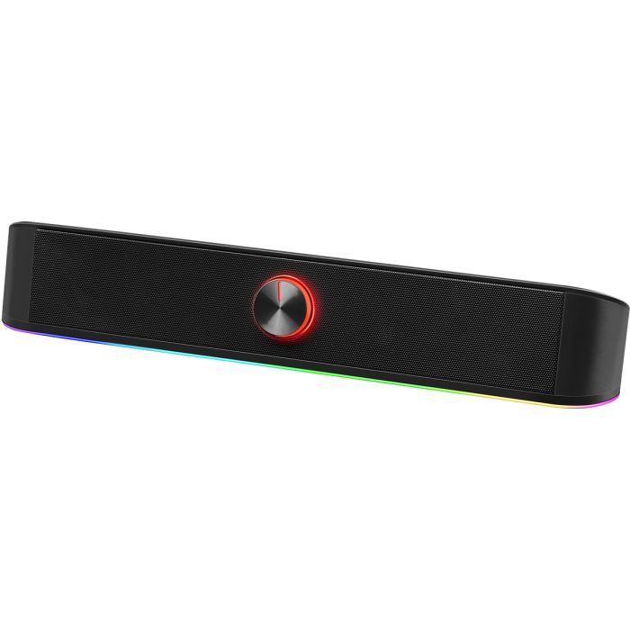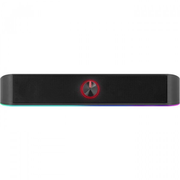 Компактний саундбар Defender Z10 Black зі світлодіодним підсвічуванням та функцією Bluetooth для монітора вашого ПК. Регулятор гучності з вбудованим перемикачем зручно розташований на передній панелі, а на верхній панелі є сенсорна панель для керування підсвічуванням та перемикання режимів AUX/Bluetooth.
