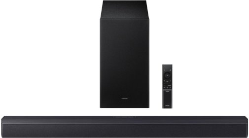 Пориньте у світ потужного, глибокого звуку з сучасною 2.1-канальною аудіосистемою Samsung HW-B450F, що подарує вам справжнє задоволення від музики, фільмів та ігор. Завдяки бездротовому сабвуферу саундбар забезпечує насичені баси, що додають глибини кожному звуковому ефекту — від вибухів у блокбастерах до ритмічних ударів улюбленого треку.