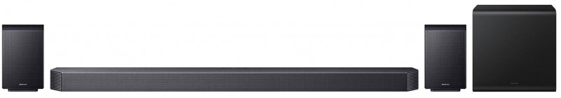 Саундбар оснащений 9 фронтальними й боковими каналами, 1 каналом сабвуфера та 4 спрямованими вгору динаміками, які разом із двома тиловими динаміками створюють тривимірне звукове поле з ефектом звуку над головою. Загальна потужність 580 Вт забезпечує потужні баси та чіткі діалоги. Новий кубічний сабвуфер компактніший за попередні моделі, але не втрачає глибини звуку. HDMI eARC передає 3D-аудіо без втрат із консолей чи Blu-ray-плеєрів, а Wi-Fi та Bluetooth 5.3 дозволяють стрімити музику зі смартфонів чи підключатися до телевізора без дротів. Технологія SpaceFit Sound Pro аналізує акустику кімнати та оптимізує звук, а AVA Pro підсилює чіткість діалогів у шумному середовищі.