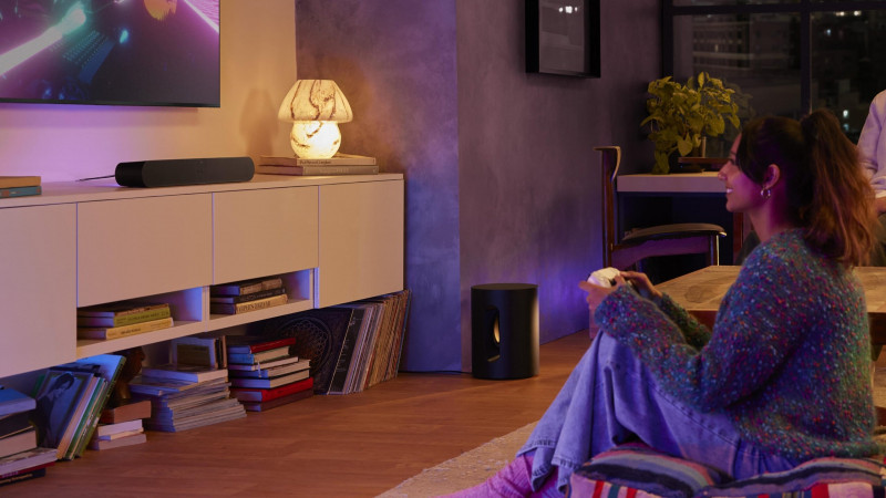 Відкрийте для себе нові можливості розваг, підключивши Sub Mini до Beam або Ray. З'єднання Wi-Fi на частоті 5 ГГц підвищує швидкість передавання звуку, тому ви можете насолоджуватися фільмами, шоу та іграми з високоякісним звуком, надійно синхронізованим із телевізором.