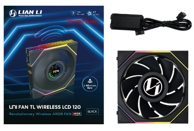 З технічної точки зору Uni Fan TL 120 LCD Reverse Wireless забезпечує максимальну швидкість 350–1900 об/хв, повітряний потік до 54,3 CFM та статичний тиск 2,83 мм H₂O при шумі не вище 31 дБА. Вентилятор оснащений надійним гідродинамічним підшипником (FDB), лопатями з рідкокристалічного полімеру (LCP) та 26 світлодіодами з ефектом infinity mirror по обидва боки рамки. Бездротова daisy-chain система дозволяє з’єднувати вентилятори між собою, а живлення здійснюється через 4-pin PWM або SATA, тоді як для LCD потрібне додаткове USB-підключення.