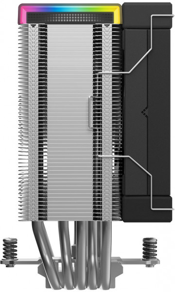 Кулер успадковує визнаний дизайн серії AK із п’ятьма тепловими трубками та зміщеною пластиною прямого контакту. Його унікальна матрична конструкція радіатора та високопродуктивний вентилятор FK120 на гідродинамічному підшипнику забезпечують ефективне охолодження при низькому рівні шуму. Вентилятор автоматично регулює швидкість обертання від 500 до 1850 об/хв, оптимізуючи потік повітря та тиск для тихої роботи.