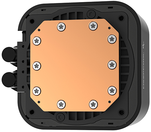 У центрі конструкції знаходиться потужна помпа 6-го покоління, побудована на базі 3-фазного, 6-слотового, 4-полюсного двигуна з векторною системою керування FOC. Вона працює в діапазоні 2500–3400 об/хв (PWM), поєднуючи високу продуктивність із низьким рівнем шуму. Збільшена мідна основа та точно прорахована геометрія мікроребер значно покращують теплопередачу, дозволяючи системі ефективно відводити тепло навіть від високопродуктивних процесорів.