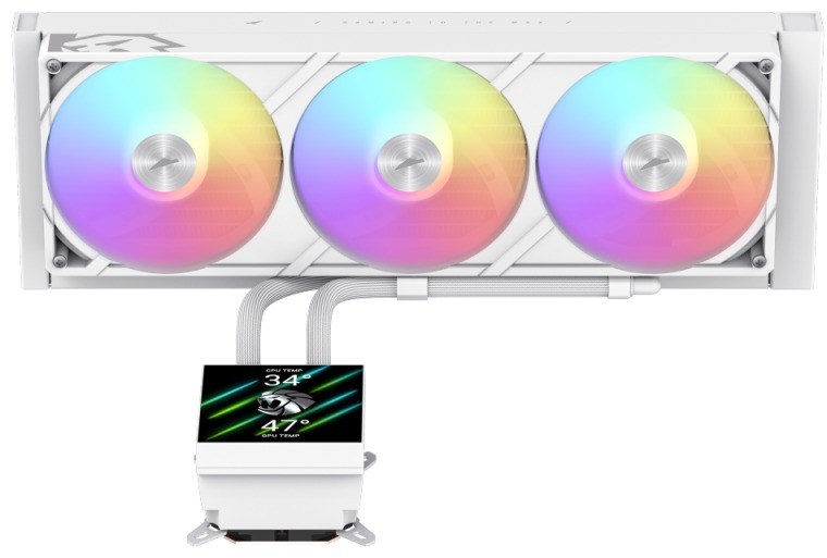 Магнітний LCD-екран з роздільною здатністю 720x720 і яскравістю 300 ніт легко знімається та обертається, дозволяючи налаштовувати теми, анімації та персональний контент. Підтримка ARGB-освітлення додає естетичного шарму, синхронізуючись з іншими компонентами. Сумісність з платформами Intel та AMD робить її універсальною для сучасних систем.