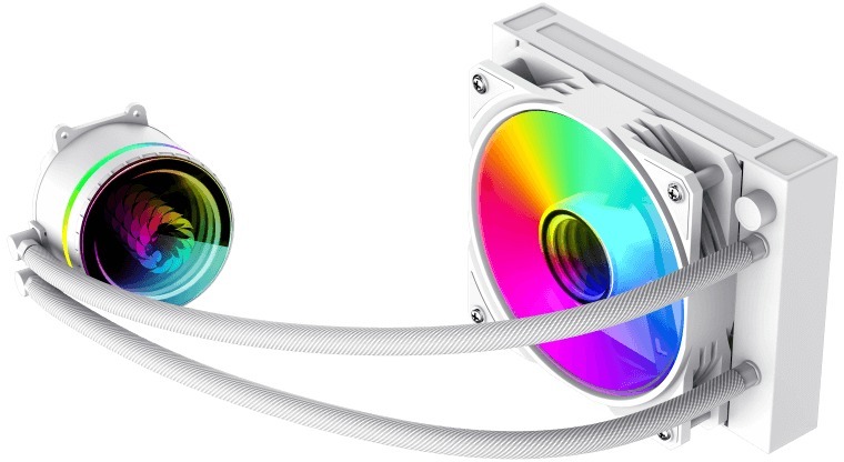 Вона оснащена адресованою ARGB-підсвіткою (Rainbow) із 8 внутрішніми світлодіодами, яка синхронізується з материнською платою або контролером HUB через 3-контактний роз’єм AURA 5V. Це дозволяє налаштувати ефекти підсвітки за допомогою популярних систем, таких як ASUS Aura Sync, MSI Mystic Light, Gigabyte RGB Fusion, додаючи ПК візуальної привабливості. Водяний насос забезпечує тиху та ефективну циркуляцію рідини.