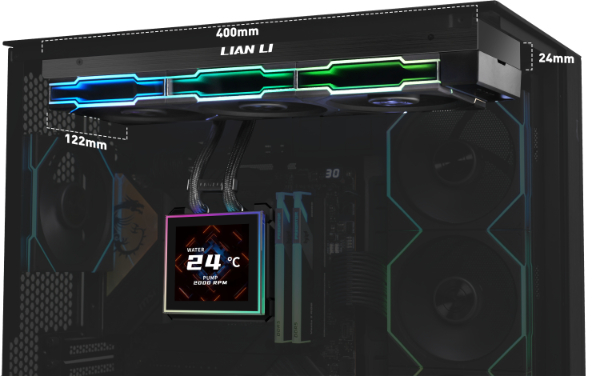 Система рідинного охолодження HydroShift II LCD-S від Lian Li є сучасним AIO-рішенням, яке вирізняється компактним 360-мм радіатором зі зменшеною товщиною (400 × 122 × 24 мм). Такий дизайн забезпечує сумісність з набагато більшою кількістю корпусів, ніж у традиційних систем, полегшуючи встановлення навіть у обмеженому просторі. Центральним елементом є 3,4-дюймовий IPS-дисплей з роздільною здатністю 480×480, яскравістю 500 ніт і частотою оновлення 60 Гц, який дозволяє відображати моніторинг температури процесора та рідини, швидкості помпи, кастомні віджети, анімації, зображення чи відео.