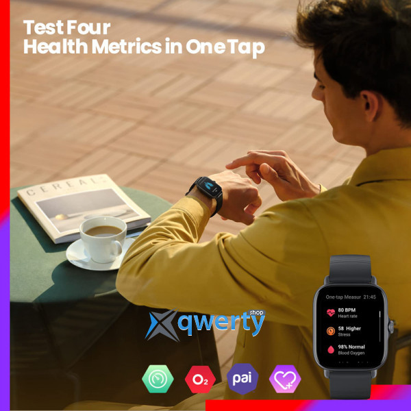 Биометрический ФПГ-датчик BioTracker 3.0 с шестью фотодиодами (6PD) одновременно отслеживает несколько показателей здоровья. Измеряйте уровень насыщения крови кислородом, следите за сердечным ритмом в течение дня и во время плавания, мониторьте ЧДД и уровень стресса. Чтобы не путаться в сложных показателях, Amazfit анализирует данные и сводит их в единую оценку состояния здоровья PAI.