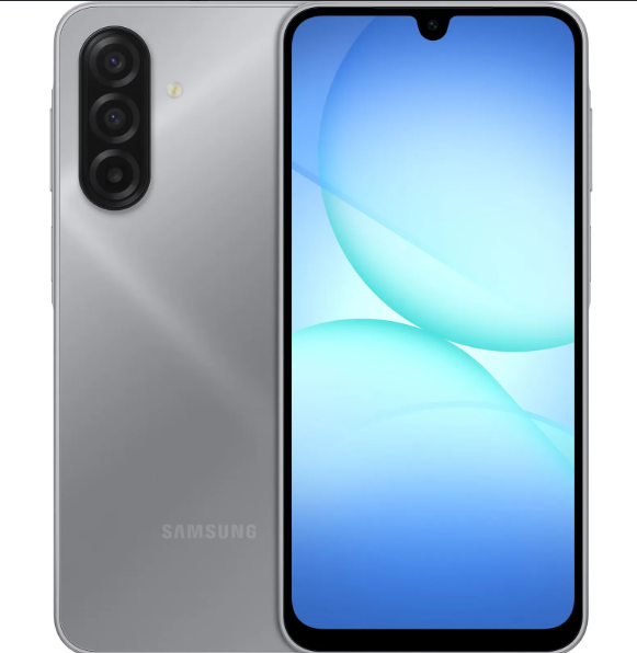 Корпус Galaxy A17 виконаний у тонкому форм-факторі з товщиною всього 7,5 мм і оновленим дизайном Key Island 2.0. Лінійне розташування камер надає пристрою сучасний і елегантний вигляд. Смартфон представлений у чорному, сірому та блакитному кольорах, що дозволяє підібрати модель під свій стиль.