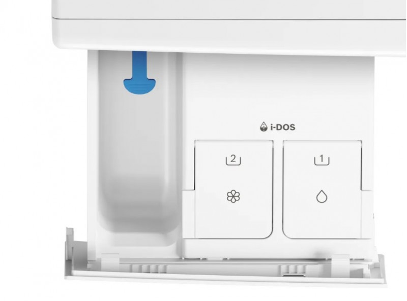 Винятково ефективний догляд за одягом завдяки автоматичній системі дозування i-DOS. Просто один раз заповніть відділення для миючого засобу та пом'якшувача, і датчики i-DOS виміряють точну кількість миючого засобу та води для кожного прання. Це економить миючий засіб та запобігає непотрібному полосканню, яке виникає під час.