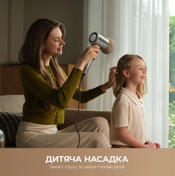 Насадки: Концентратор, Насадка-щітка для об'ємного волосся, Насадка для дитячого волосся